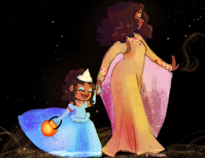Day 8 of my Trick or Treatober project. Do they look familiar? This mom and daughter are a big fan of a certain Cinderella film👸🏾👑 #blacktober #KidLitArt #ChildrensBooks #illustration #trickortreat