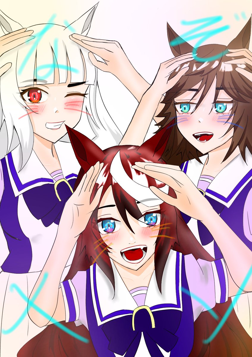 謎メン集合〜っ #ウマ娘 #ウマ娘プリティーダービー #トウカイテイオー #ゴールドシップ #ミスターシービー #絵描きさんと繫がりたい リクエストで来た3人のウマ娘描いてみました。(全員髪下ろし)
