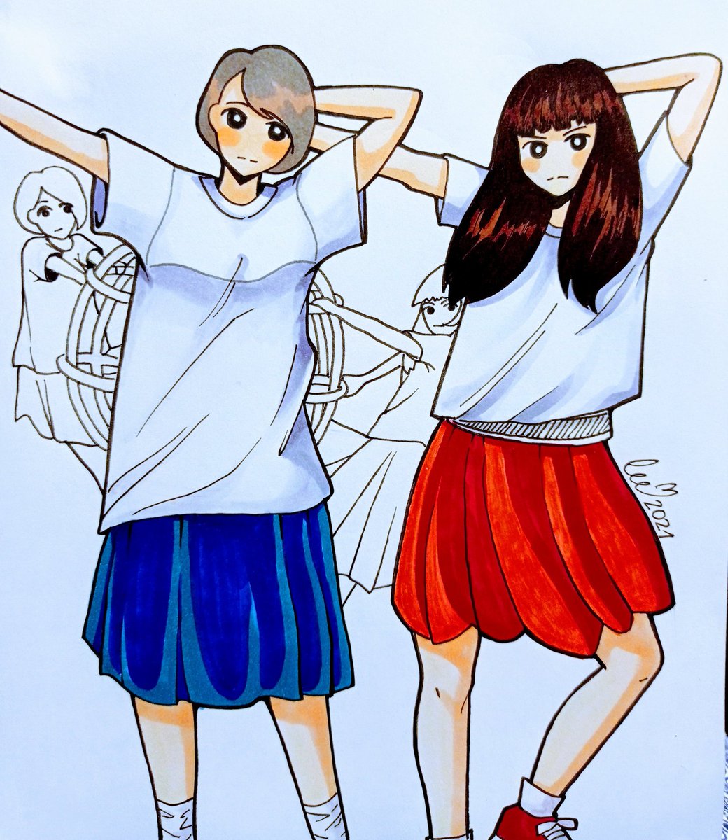 "oddLOOP" // I know this might be a bit of a stretch, but for the prompt "loop" I got reminded of this song by Frederic and so I wanted to draw the girls from the MV. Super catchy tune~ ✨ #inktober2021 #inktober2021day19 #inktober2021loop #フレデリック #fanart #illustration