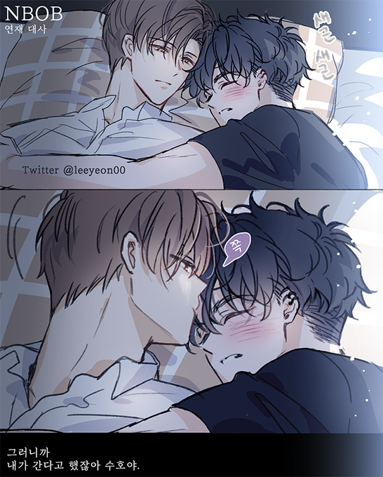 24 19 수호정우 수호 집에서 잠들고 눈떴던 장면에 연재 때는 저런 뉘앙스로 정우가 남탓하는 대사 있었는데 지금은 사라졌지만 넘 좋았음... 난 권정우가 남탓 할 때마다 너무 좋음ㅠ (? 근데 지금 내 서재에도 없어서 대사는 정확하지 않다...ㅠ 22/11/19 01:18