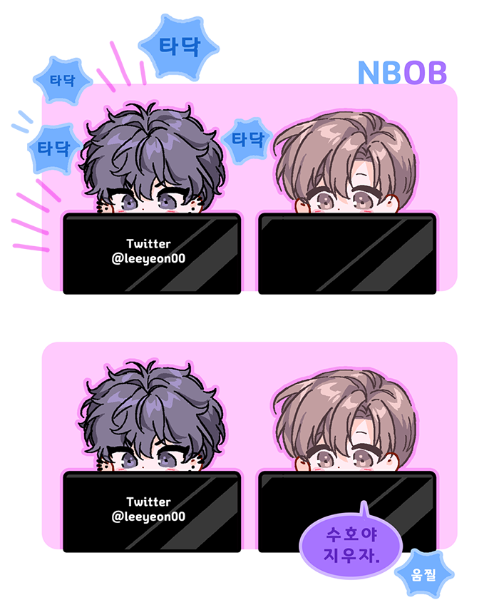 수호정우💙💜 형에 대해 만사를 걱정하며 검색중이던 수호를 현장검거한 정우^.^ 이상한 생각 하지 말라고 달래도 그럼에도 매사를 걱정하는 바람에 기억상실(ㅋㅋㅋ)까지 대비한 수호가 정말 귀여움ㅠㅠㅋ