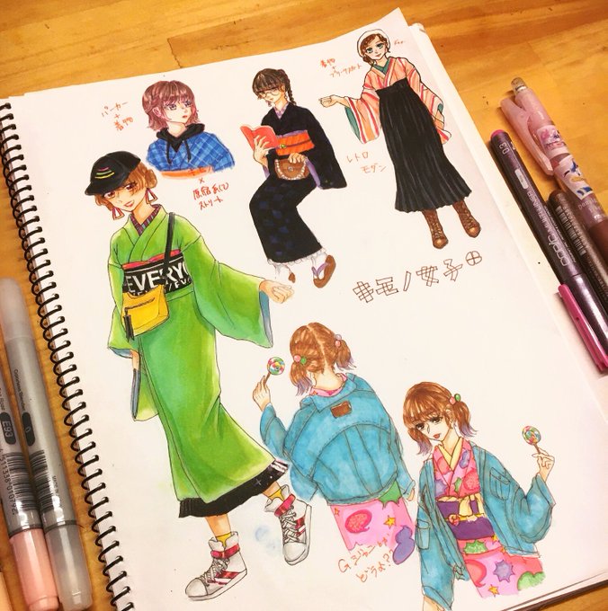 本気で着物女子になりたい今日この頃 というかまじで色塗り見切り発車すぎて柄の下手さが尋常じゃない #イラスト #コピック #着物 #イラスト好きと繋がりたい