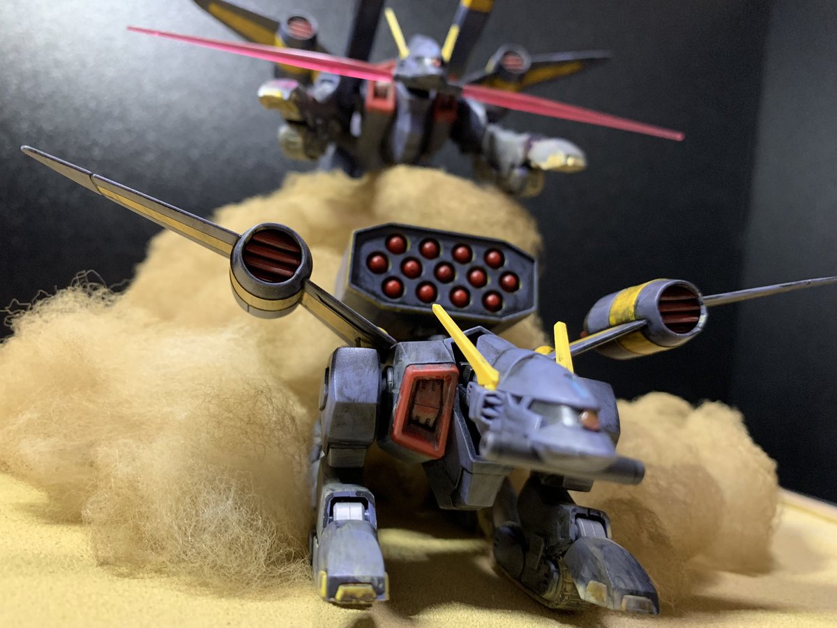 2 7 1/100ベースジャバーの完成ツィートも見たことなかったので作ってみました!結構テキトーに作ってます😅 MGジェガンD型も載せてみましたが固定が難しかったです💦 でもかっこいい! #ガンプラの画像貼るとRTされると聞いて #ガンプラ #ジェガン 23/04/09 13:11