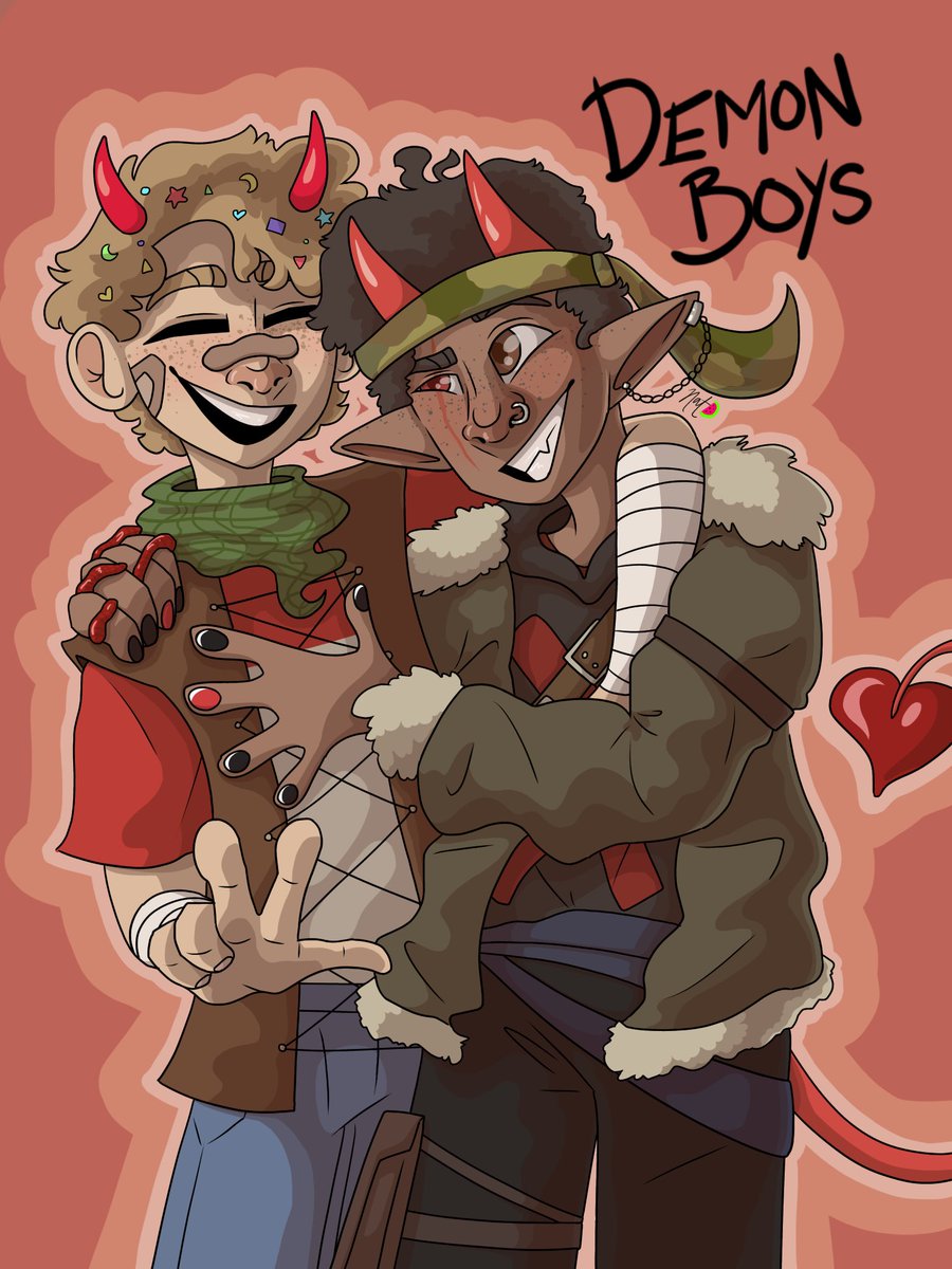 demon boys!! this is from when eryn first joined so it’s a bit old and kinda lazy but o well :) #tommyinnitfanart #erynfanart #dreamsmp