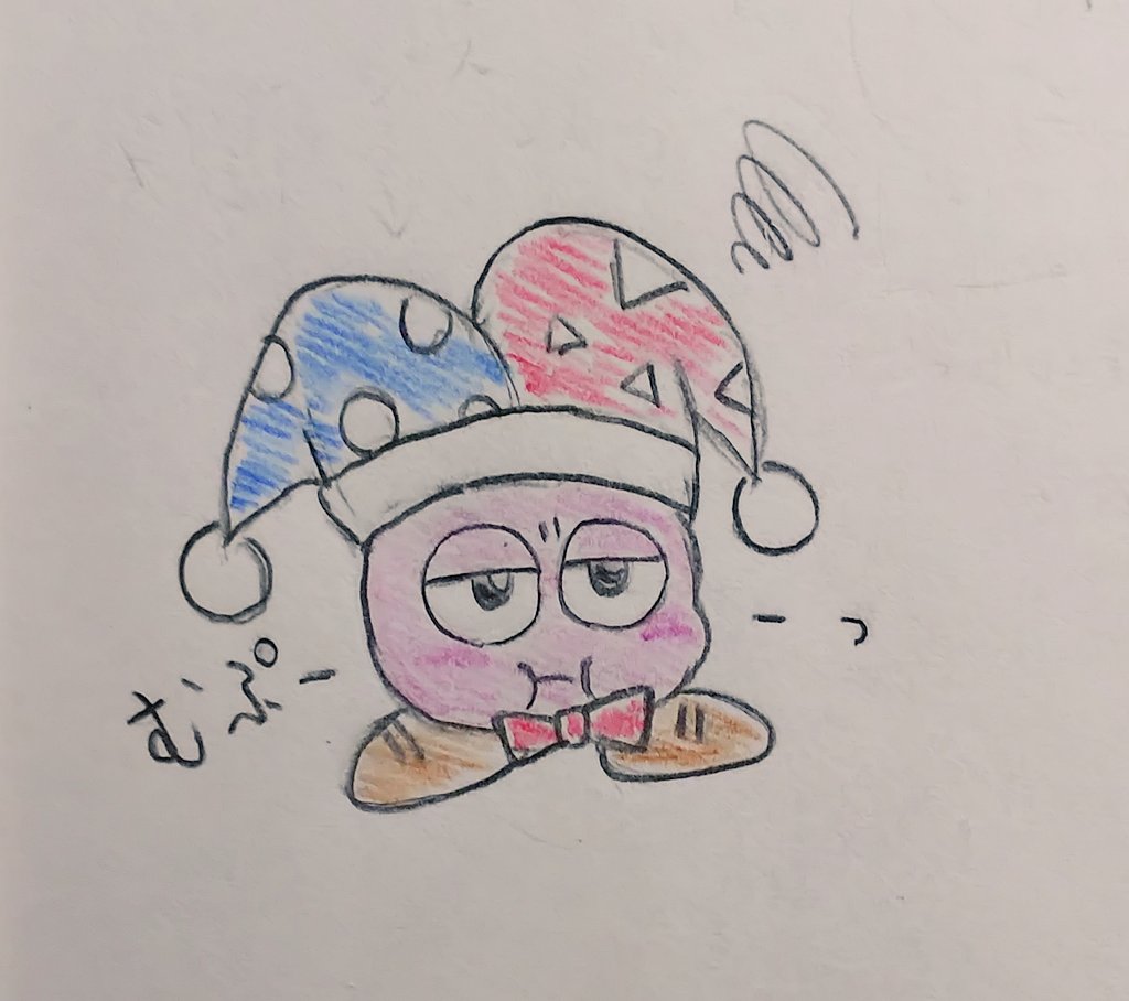 ふと、落書き帳を眺めてたら 星のカービィのキャラ描きたくなってマルク描いてた〜 可愛いフォルムの時と怖いフォルムの時のギャップが激しいキャラだよなぁ