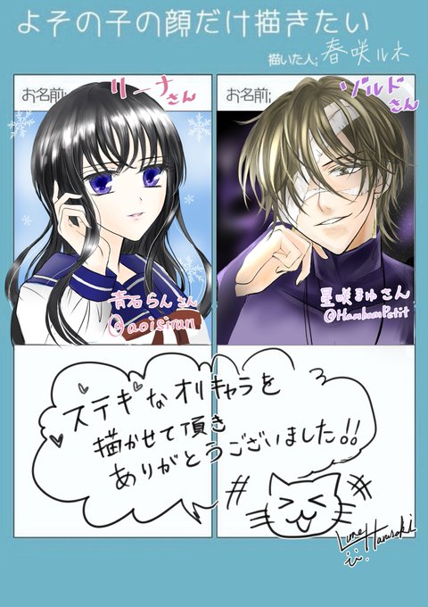 お待たせしました〜! #よその子の顔だけ描きたい @HamhamPetit @aoisirann お二方のお子様を楽しく描かせて頂いて、新たな発見もあり勉強になりました✨✨ ありがとうございます💖