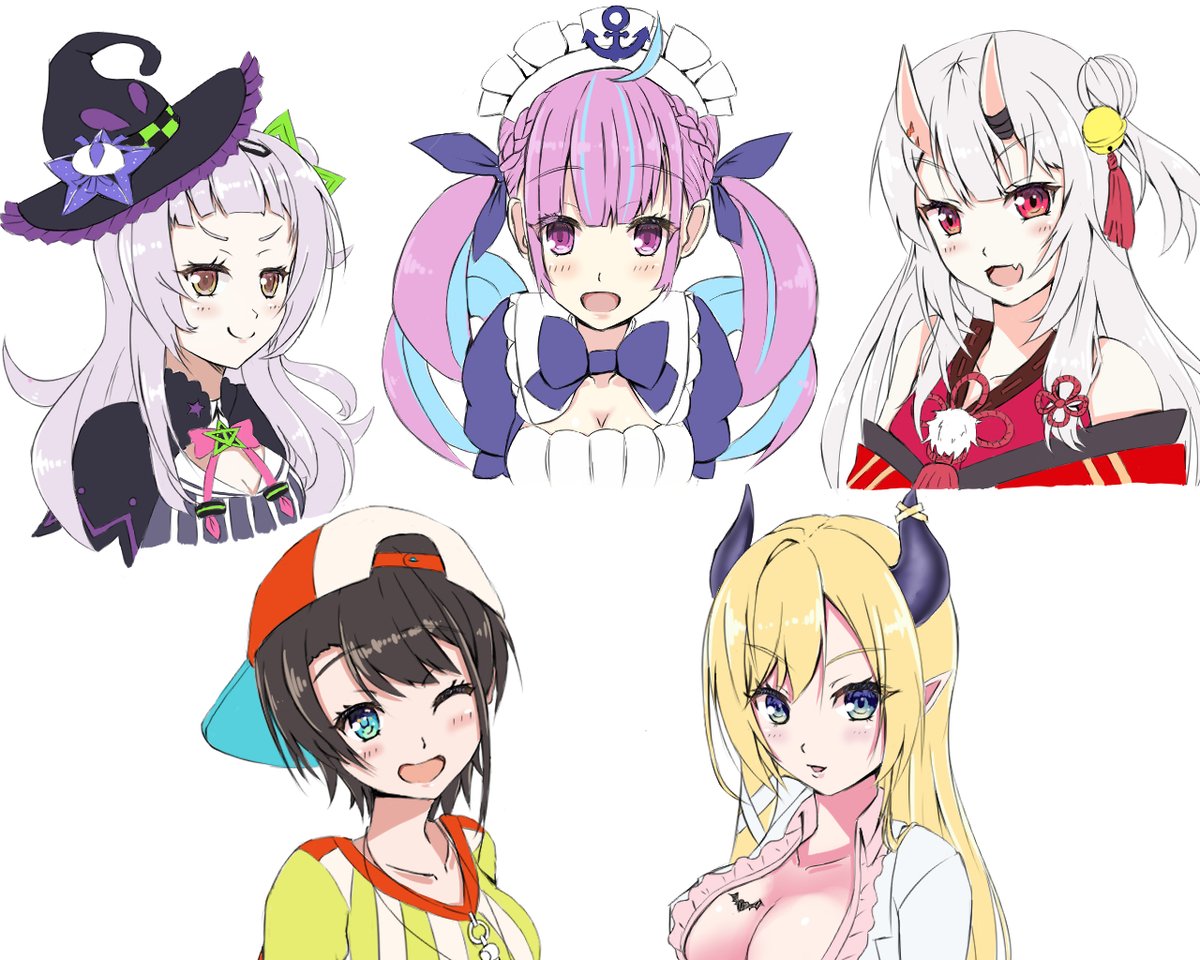 たまにはいろんな子描きたかったので、ホロライブ二期生描いてみました。 #百鬼絵巻 #プロテインザスバル #しょこらーと #あくあーと #シオンの書物