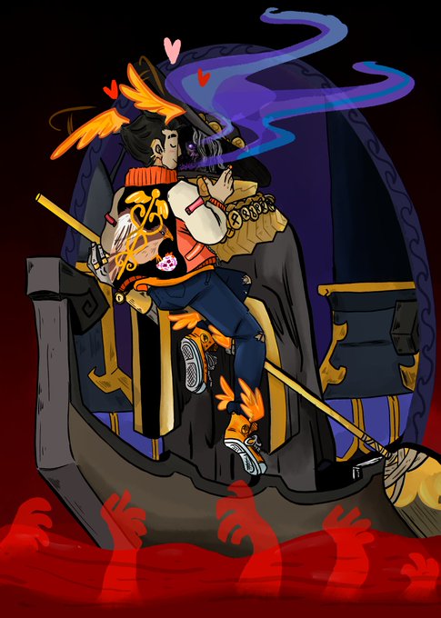 here's my #Charmes commission by @ToriaScribbles of a scene from my fic 'Three Thousand Years From Now' - thank you Toria!!! I am in love with this commission!!!! 😤💜🧡 #HadesFanart #HadesGame