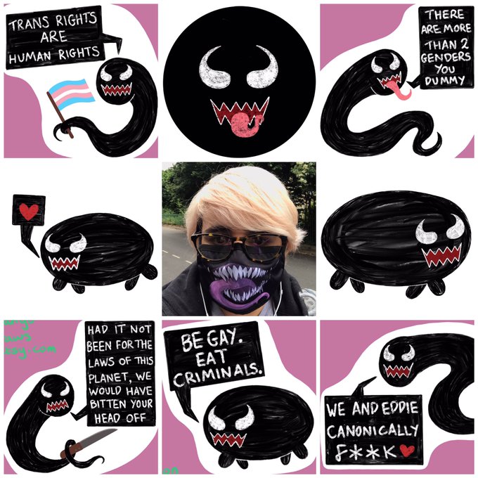 #faceyourart challenge, except it’s just me and lots of Venom noodles that I’ve drawn (feat. face mask by @owlapin)