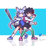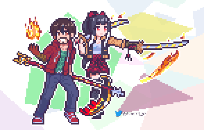 Pixel Art Commission for @ DonnyDoncrafter ! Featuring two characters 🔥 and simple background #pixelart #kofi #commission