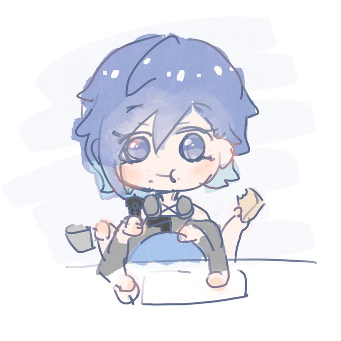 Perfectly not 3 hands but 6 hands Yugo eating breakfast but still pointing at you in the morning💙 #YugoAsuma #AsumArt