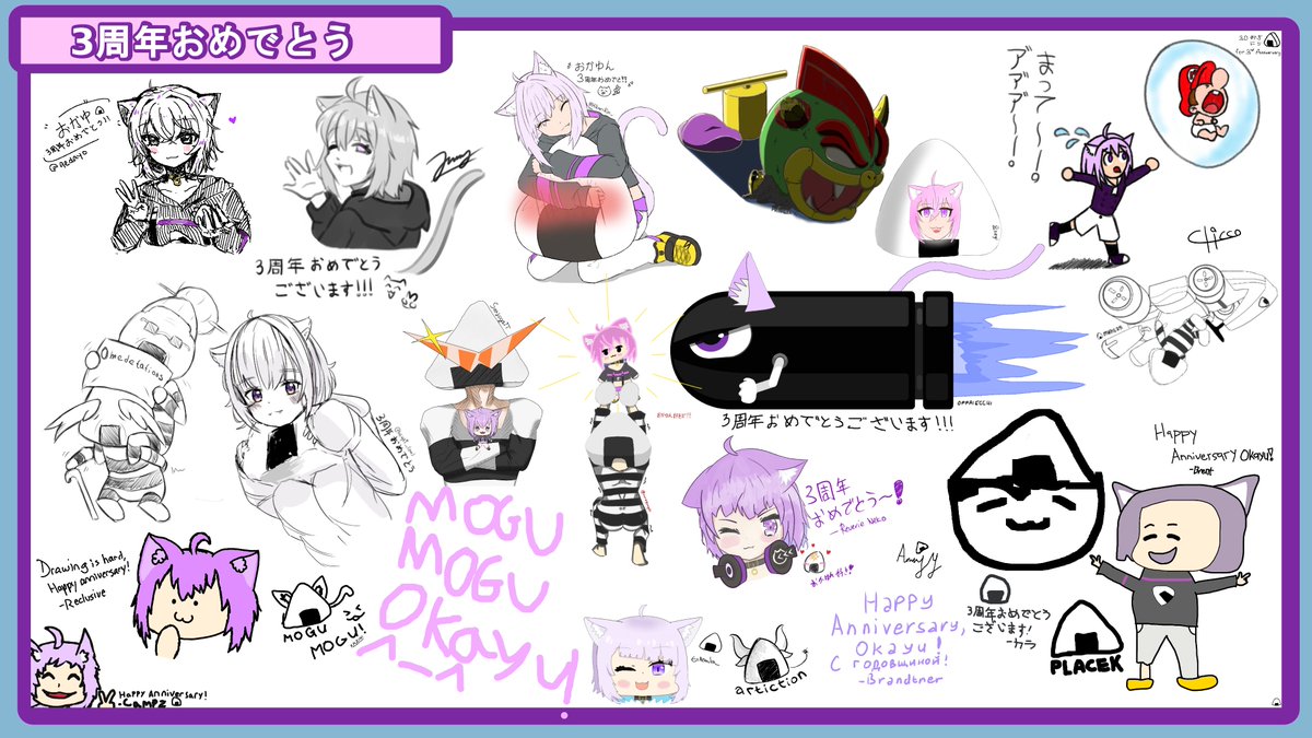 おかゆん3周年おめでとう〜これからもおかゆんの焼きおにぎりになるよ〜 Happy 3rd Anniversary, Okayu~ Here's an aggie artboard from your overseas fan discord server!! Hope you like it!! #絵かゆ #猫又おかゆ3周年記念