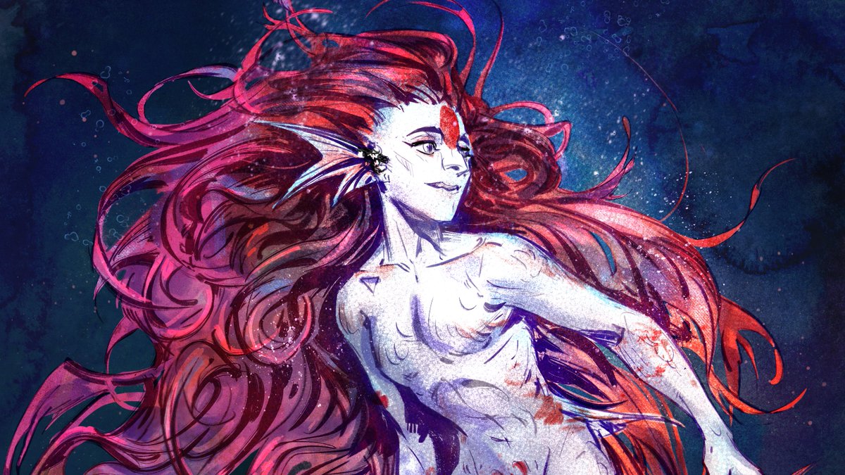 Для коллаборации на тапас и вебтун рисовала персонажей в виде русалок) На тапасе можно найти весь коллаб со ссылками на много комиксов) Демон некая собирательная глубоководная чача, Саша- катран, совсем не глубоководная акулка, которую затянула опасная трясина. #mermay