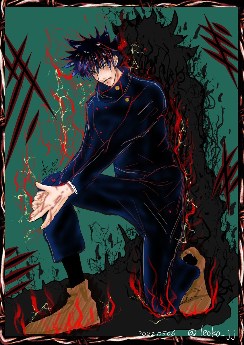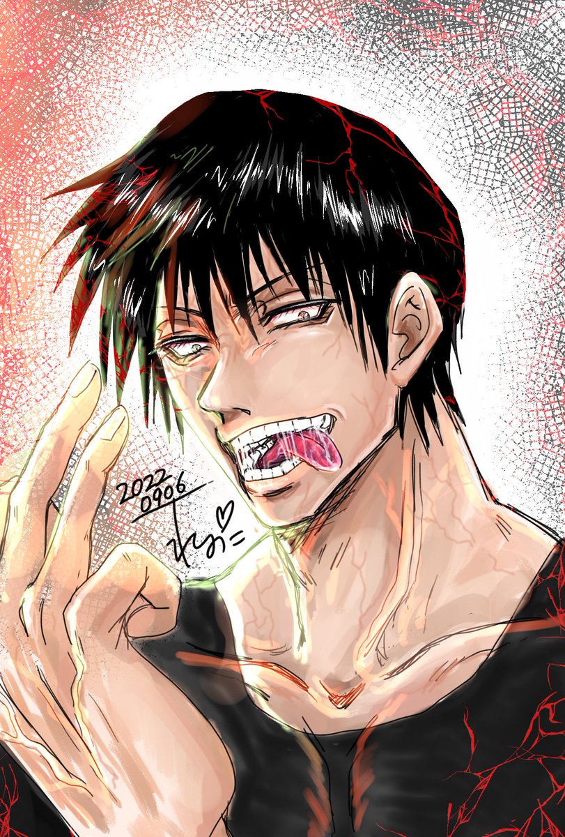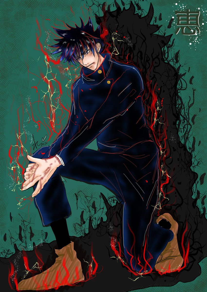 ⚠️流血注意⚠️(2枚目カラー) #呪術廻戦ファンアート #伏黒恵 #ラフ絵 #戦い疲れて訳わかんなくなった恵 #悠仁がツッコミ入れるところ迄がセット 召喚しようとしたのにハートになっちゃって思わず【愛 】言っちゃった恵 またラフ絵のまま塗った悪い子はどのこどいつだい!? 私だよッ!( ✧Д✧)