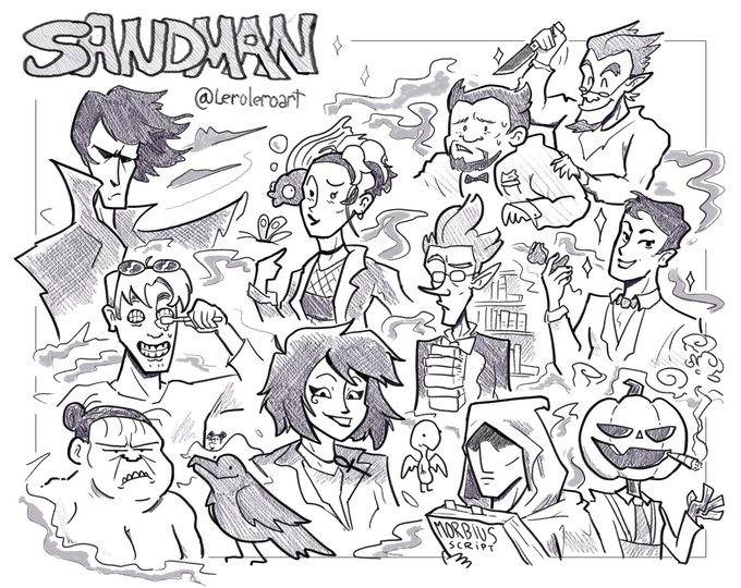 I don´t usually read comics but I loved the Sandman by @neilhimself , so I doodled all my favorite characters. Neil, if this tweet ever finds you I beg you to confirm if the Corinthian brushes his teeth like this. Thank you. #Sandman #sandmanfanart