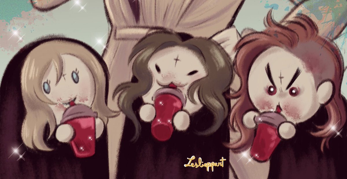 Just Lady Dimitrescu and her daughters having a nice and bloody slushie💕🥤 #ResidentEvilVillage #LadyDimitrescu #fanart