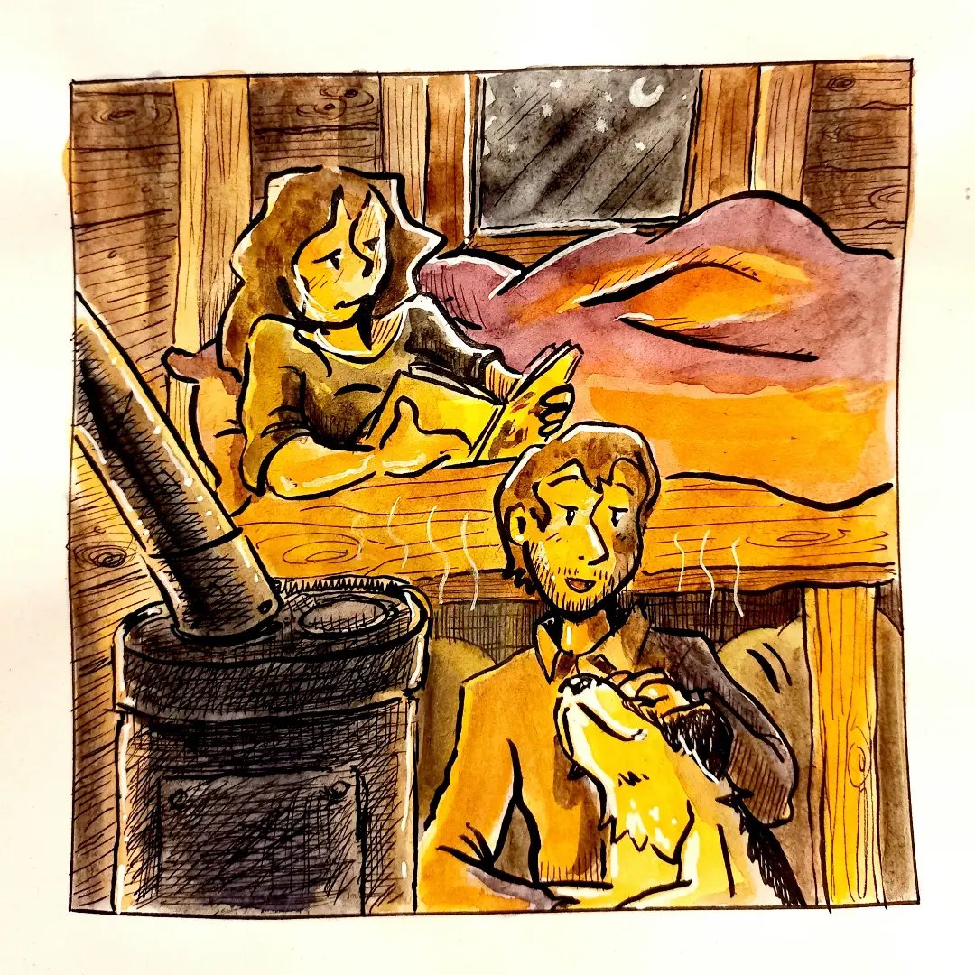 # Correspondre et Nid Un autre double sur le thème de la couette, dans le fond. Week-end la main dans le slip oblige ! Vivement le retour dans notre roulotte. Avec @drici.isciane #inktober2022 #illustration #dessin #aquarelle #inktober #voyage #dog #roulotte #viealternative