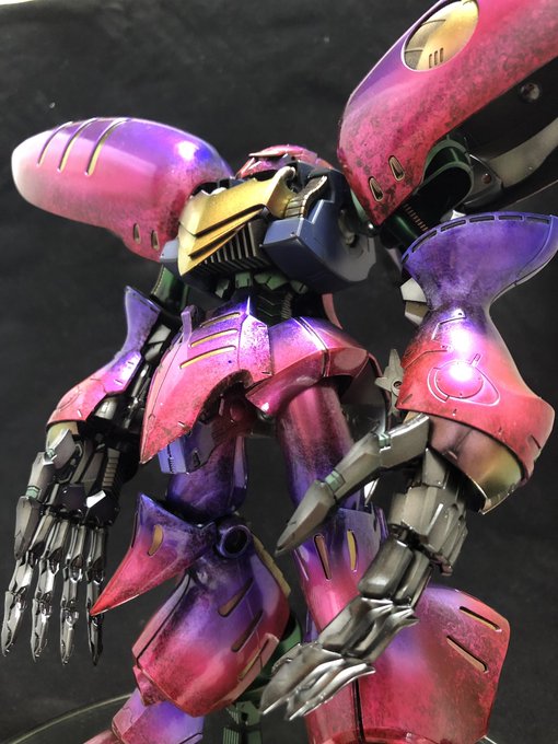 キュベレイダムド完成した☺︎ (ファンネル塗ってなかったけどw) 立ち上げ塗装+ラップ塗装でグラデーション! #ガンプラ #キュベレイダムド #ラップ塗装 #モーニングドーン #ガンプラの画像を貼るとRTされると聞いて