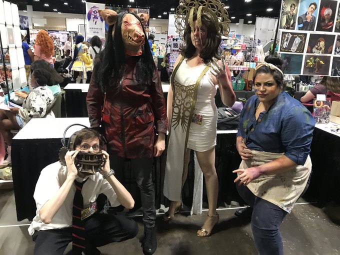 My dead by daylight squad from this weekend! Dwight is @kitakaze0013 pig is thicc.pachi.cosplay on insta I’m the plague and Jane is @JustCuriousFx #Metrocon2019 #metrocon #DeadbyDaylight #dbd #cosplay