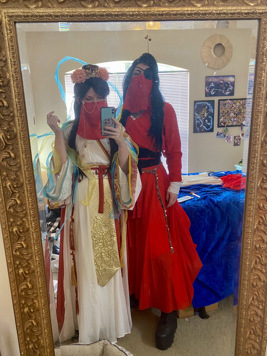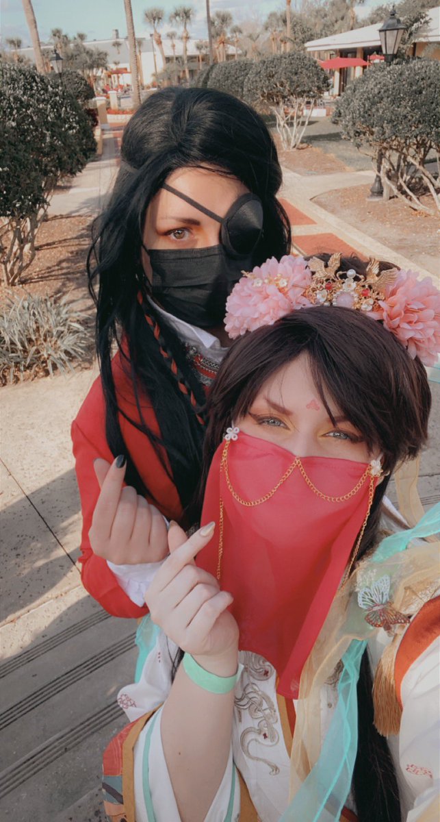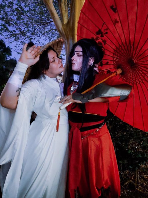 Ahhh! The hualian photo shoot! I’m hua cheng, xie lian is @BigBaraBitches ,and the photographer is @ ruetbeer on insta! My favorite parts are how I’m so pale I look undead and how xie lian is almost in a split to look shorter than me #hualian #HeavenOfficialsBlessing #cosplay