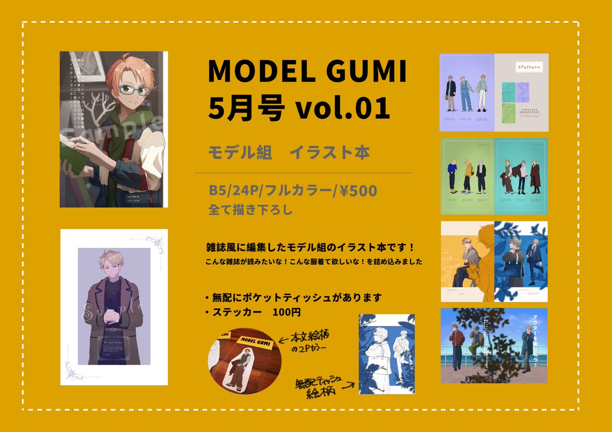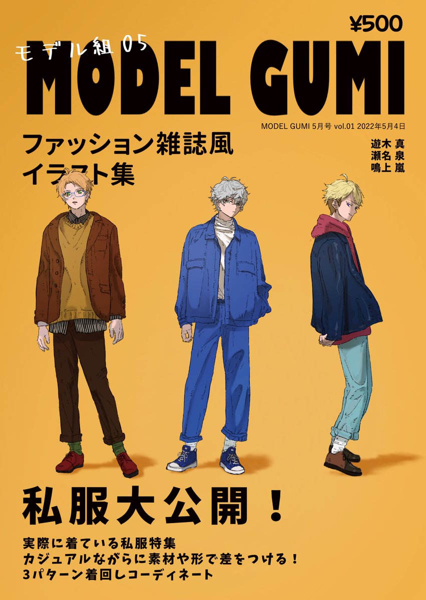 5/4 SUPER COMIC CITY 29 SUPER brilliant days 2022 ブリデ新刊サンプル 『MODEL GUMI 5月号 vol.01』 B5/24P/フルカラー/¥500 モデル組3人のファッション雑誌風イラスト本です! 全て描き下ろしになります!よろしくお願いします〜! pixivに数枚多めに載せています【pixiv.net/artworks/97919…】