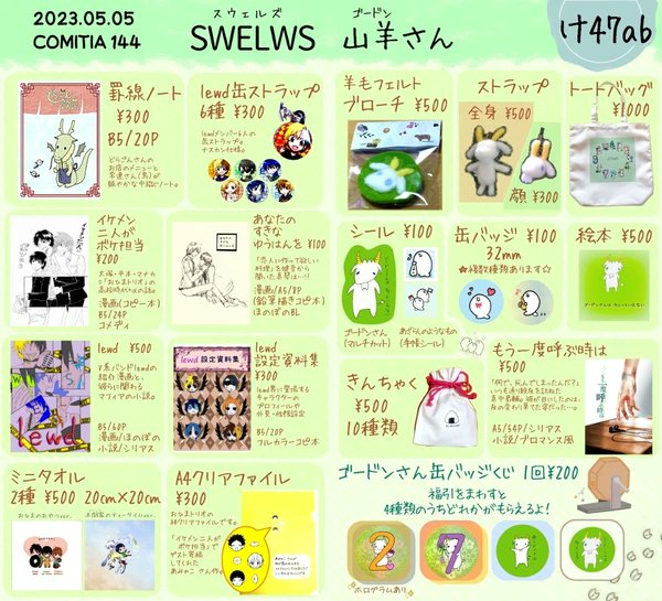 1 2 設営完了です! #COMITIA144 #コミティア144 け 47ab にてお待ちしております。 缶バッジが必ず当たる福引もありますのでお気軽に遊びに来てください。 23/05/05 10:29