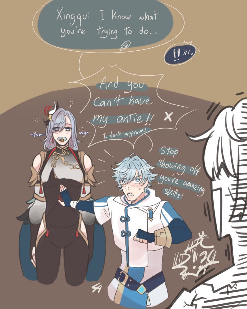 Why not all three at once? Also @microbisexuaI got some good taste, Ning approves 😔✨ #GenshinImpact #genshinimpactfanart #beidou #Ningguang #beiguang #fanart #Genshin #mihoyo #art #myart
