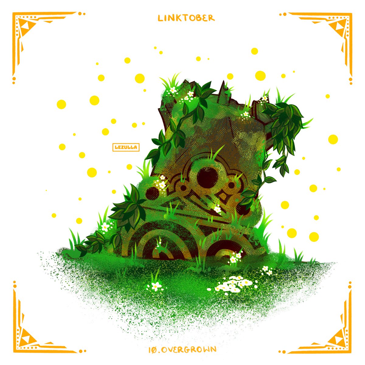Linktober 10: Overgrown I really love how BotW had so many overgrown ruins—including the broken and forgotten guardians! All the little flowers growing on them was a nice touch! #linktober #linktober2022 #legendofzelda #loz #botw