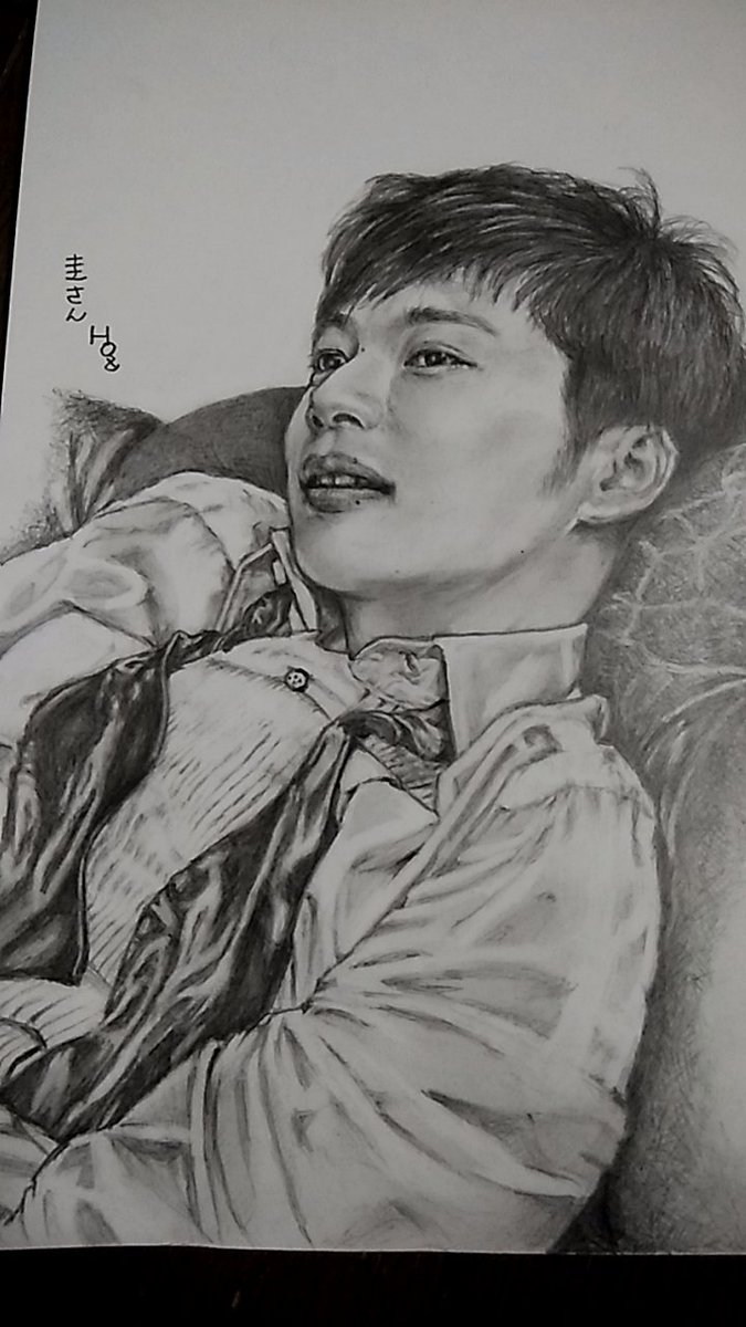 やっと描けました😄黄色の圭さん😅 #田中圭 #鉛筆画 #パステル #色鉛筆