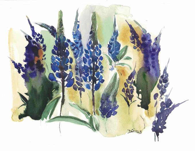 Wild lupins from a photograph I took several summers ago in Northern Ontario. Wild Lupins #watercolours #watercolor #abstractart