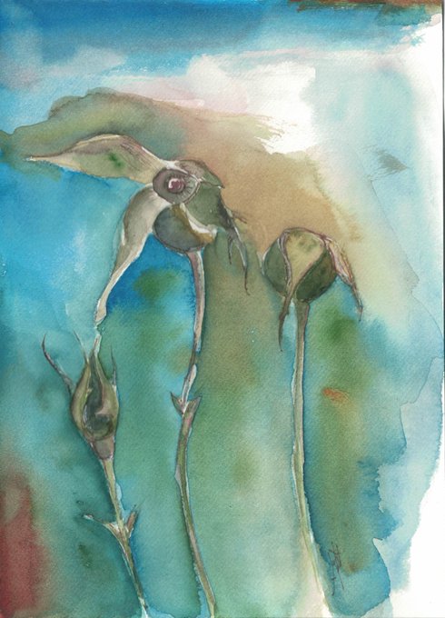 In anticipation of spring and finding these little blooms poking through last year's leaves. Snowdrops. #watercolour #watercolor