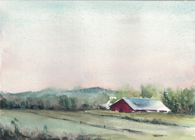 Happy New Year! May 2023 be a year where love, health, and peace flourishes. My first painting of 2023. Old barn and silo. #landscape #watercolour #watercolor