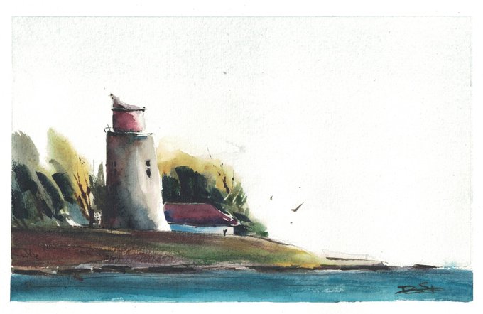 Standing in a loneliness. Unlike anything, I've experienced before. Lighthouse #watercolour #watercolor painting with the original #pen sketch