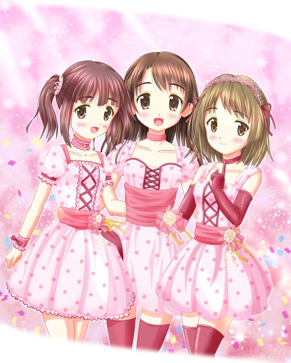 37 67 島村卯月と緒方智絵里と三村かな子で ピンクドットバルーンのトリオを描いてみた(=゚ω゚)ノ 2枚目以降はスマホ向けに一人ずつデザインしてみたり。 //もっと速く描ける様になりたいナ…( ´ⅴ`) 20/05/02 00:00