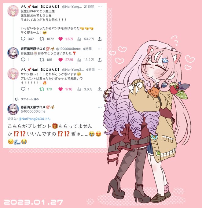 10 175 魔王さまお誕生日おめでとうございます🎂🎉 #でかい魔王様と小さいオトナリの誕生日征服 #Nari_Art 23/01/27 02:19