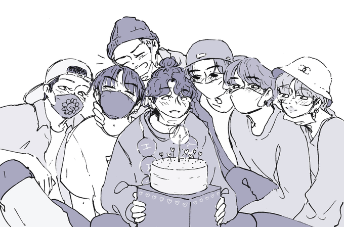 Billboard Hot 100 #1 singers!!!!!! Also belatedly Jungkook's bday! Was so moved by their reaction I had to draw a group pic :')💜🎂🎉🎵 #BTS_Dynamite #btsfanart