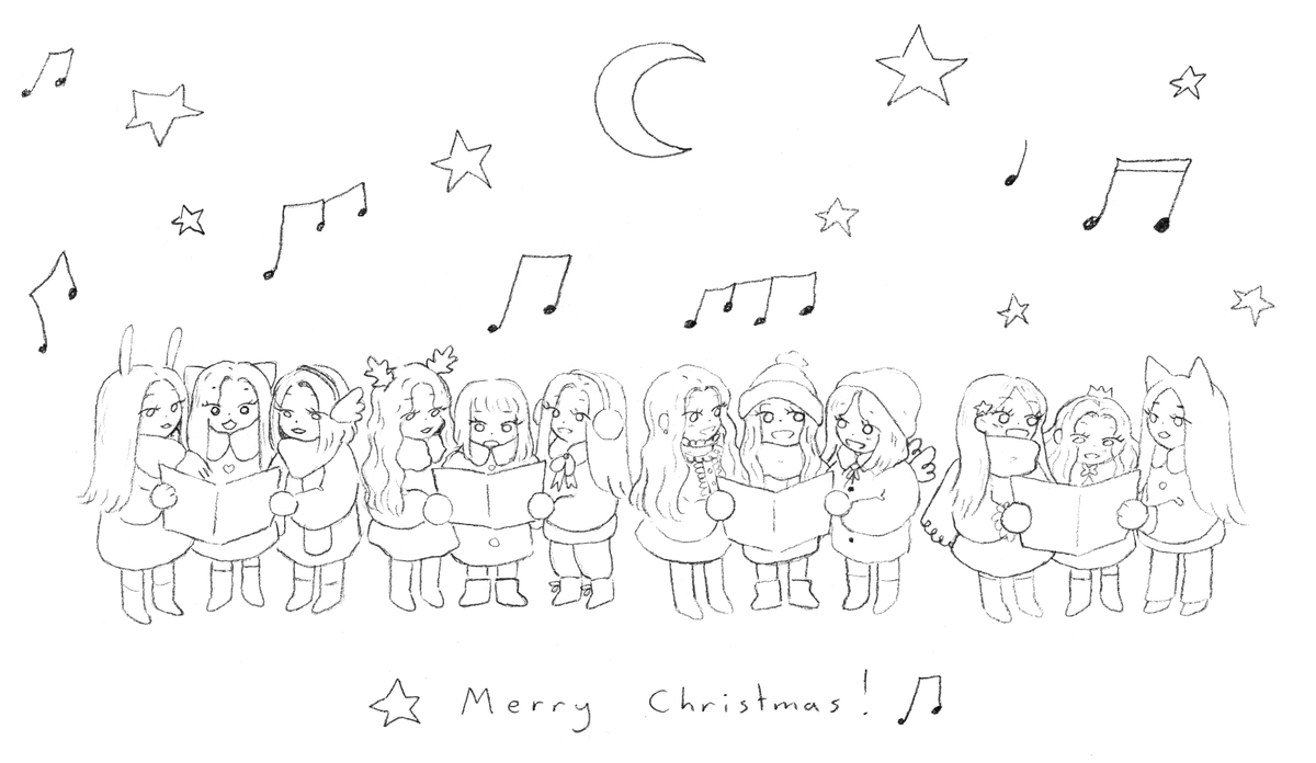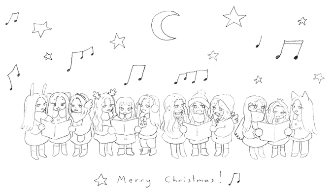 LOONA Christmas card for @NosferatChew for secret santa! 🎄🌙💫 My first time drawing all of them 💞🎵 #loonafanart