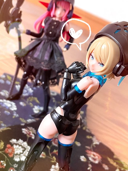 ということでひめゆり地雷ちゃんverアップデート💞 スカートはアゾンさん裾上げ〜からの地雷ちゃんマストアイテムの黒マスク♡♡ ヒメルのツインテは創彩庭園のまどかちゃんから 瞬間接着剤でつけてるだけ。。。うふふ𖦹 ̫ 𖦹 完成形かも💜🖤 必殺技は5秒に1回LINEアタックです笑 #メガミデバイス twitter.com/deesse_asura…