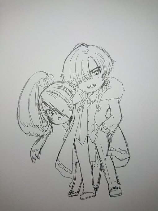 江口先生が素敵なモデル作ってくださったのでその中から1個選んで描いてみました!(全部描きたい) 抱っこかわいい~(*´ω`*)めちゃくちゃ勉強になる……!!!!かわいい!!!!ムジイナちゃんかわいい!!!!