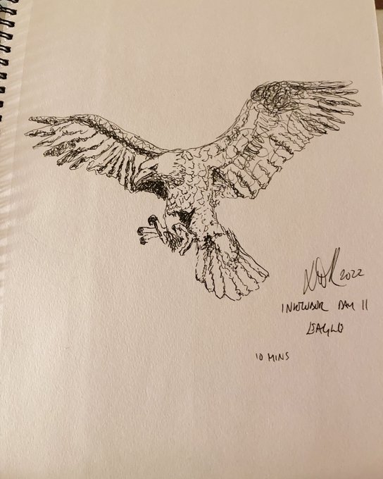 Another crap nights sleep 😩#inktober2022 day 11 prompt - eagle. 10 mins. This would be a good one to do different timed sketches with, and I’d like to spend more time doing a much more careful study of an eagle at some point too. One day #inktober2022day11 #inksketch