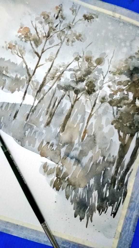 OMG这个色系好棒 画了几个小时手好酸😂 Burnt sienna + Prussian blue 融合,但是burnt sienna的部分多一点就可以得到有点绿色的了 23/2 #watercolour #watercolourart #Twitterart #forest #调色 #beautiful #水彩画 #水彩イラスト #artshare #art