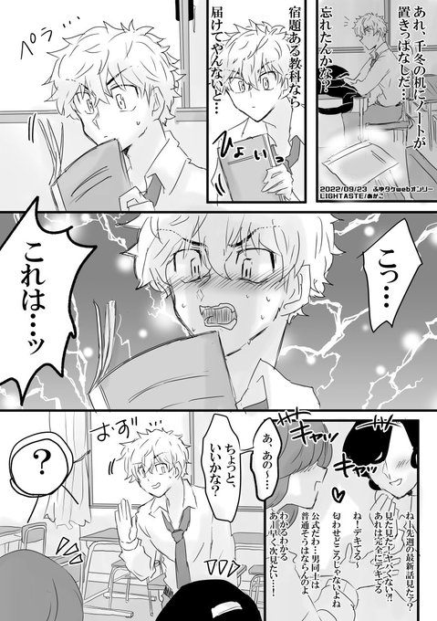 #君とな1127 遅ればせながら!展示をぽいぴくに上げました パスはスペースのリンク先に記載してあります。 12/18の新刊のマイ武・ふゆタケ、三人の中身入れ替わりわちゃわちゃ本の冒頭4Pです。 スペースは【C館:う4:LIGHTASTE】です! poipiku.com/4348/7905594.h…