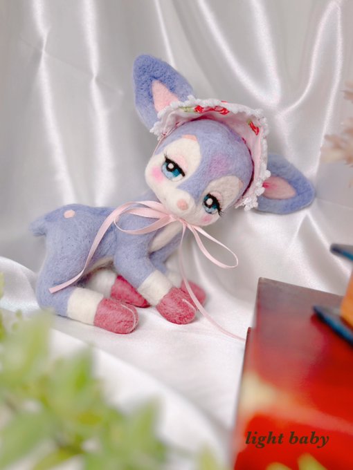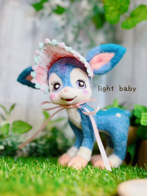 7 44 青色バンビさん🦌🫧 いろんなことに興味深々な元気なバンビさん(*´꒳`*) ピンクが良く映えるので可愛いピンクのボンネットが良く似合います🥰 #羊毛フェルト 23/04/26 18:22