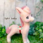 ピンクのお馬さん🐴🍓 ふわっとした笑顔にまんまるの瞳が可愛いお馬さんになりました🥰 苺がよく似合うので苺のくらをつけてみました🍓 #羊毛フェルト