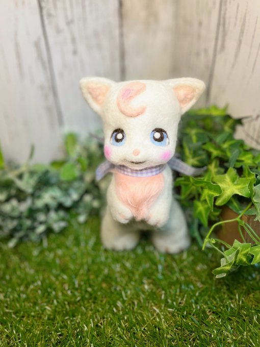 3 33 ネコさん🐱💕 新しいネコさん2匹作りました♪ 子猫のピンクの前髪が可愛い白猫さんと ロシアンブルーのクールなネコさん🐈 クリマ来週なのでどきどきです🥰 #羊毛フェルト 23/06/10 18:07