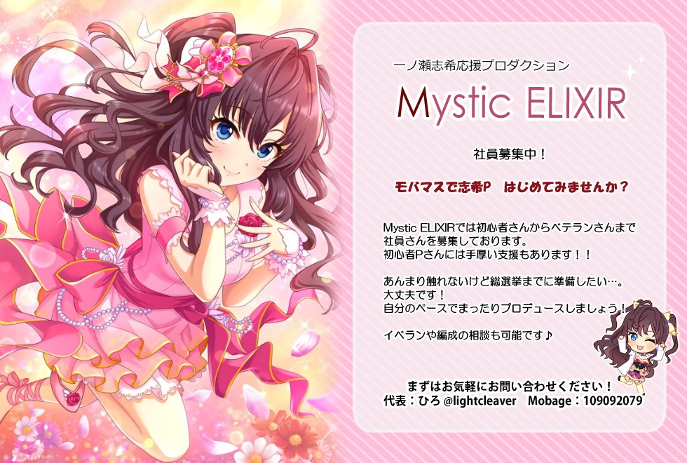 フリスクアイプロお疲れ様でした…! 志希ちゃん応援プロダクション「Mystic ELIXIR」ではメンバーを1名募集しております。今年の総選挙のためにモバでも頑張ってみたい初心者さんからベテランさんまで大歓迎です。もしご興味がありましたら、私までご連絡ください! #担当プロ宣伝220216
