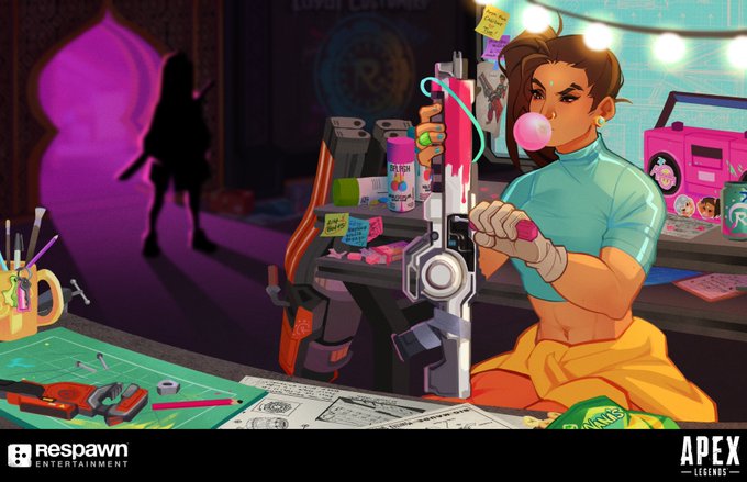rampart's workshop 🔧 here's the full artwork for the first scene in her radioplay, this project was an absolute joy to work on and i loved cramming it full of little details 🫶💕 #ApexLegends