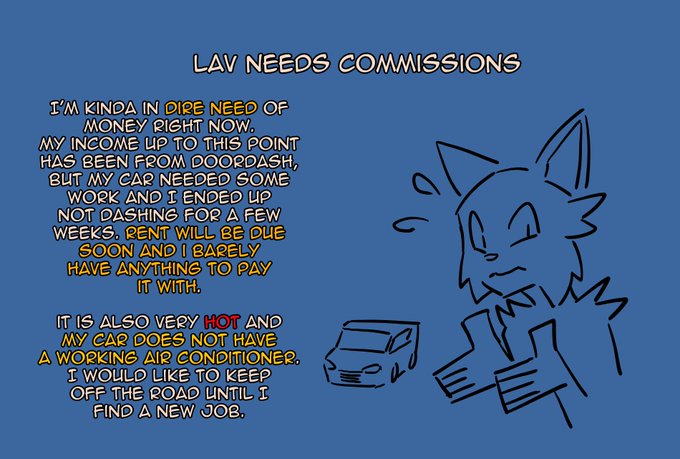 Knocked my prices down. I'm lowballing myself bad on this but I need the money that bad. Fiverr store fiverr.com/lavlavs. Ko-fi donations ko-fi.com/lavlavs. #commissionsopen #Furryartist #sonicartist #animeartist