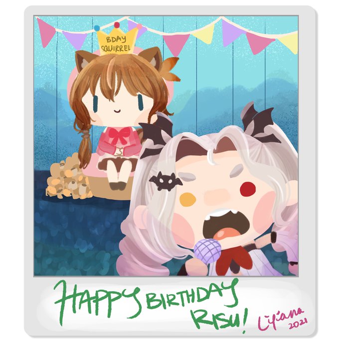 oops forgot to post it here~! Happy birthday Risu-chi <3 if it is visualized, this is what happened during the bday stream would look like XD #HappyRisuDay #GambaRisu