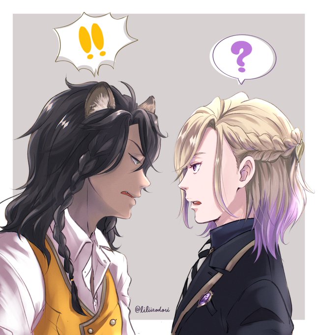#第2回twstミュシャ企画 橙さんの企画にレオナ・キングスカラーとヴィル・シェーンハイトで参加させていただきました! 上記のタグから皆様の素敵な作品がたくさん見れますので是非✨ #twstファンアート #ツイステファンアート
